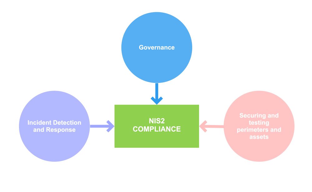 Reste maintenant à savoir quelles sont les actions à mener. En tant que RSSI, votre plan d’action de mise en conformité avec NIS2 se concentra autour de 3 axes principaux :